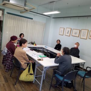 今日の朗読はまずいつも通りお口の体操です。その後、濁音と鼻濁音の使い分けを練習し、順番に朗読していきました。最後に皆で高村幸太郎の「氷上戯伎」を朗読しました。