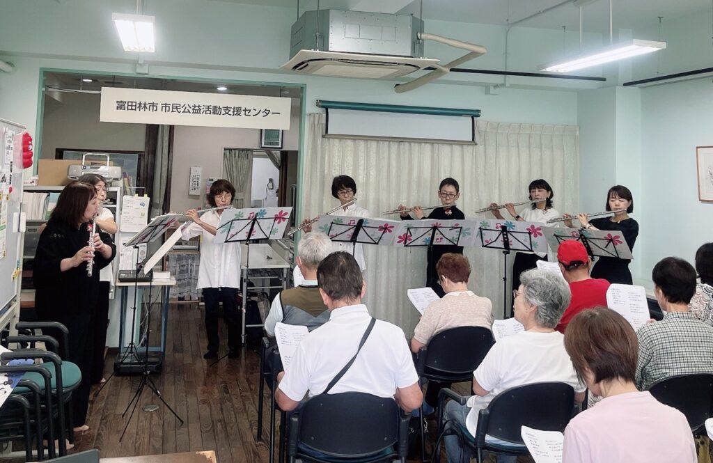 本日は体操教室とフルート演奏会を、組み合わせたコラボイベントを開催しました。前半は椅子に座ってできる軽い体操を行い、後半はリラックスした雰囲気の中でフルートの生演奏を楽しんでいただきました。参加者からは「楽しかった」「音楽で気分が明るくなった」「体も心もほぐれた」といった声が多く寄せられ、心身のリフレッシュにつながる有意義な時間となりました。