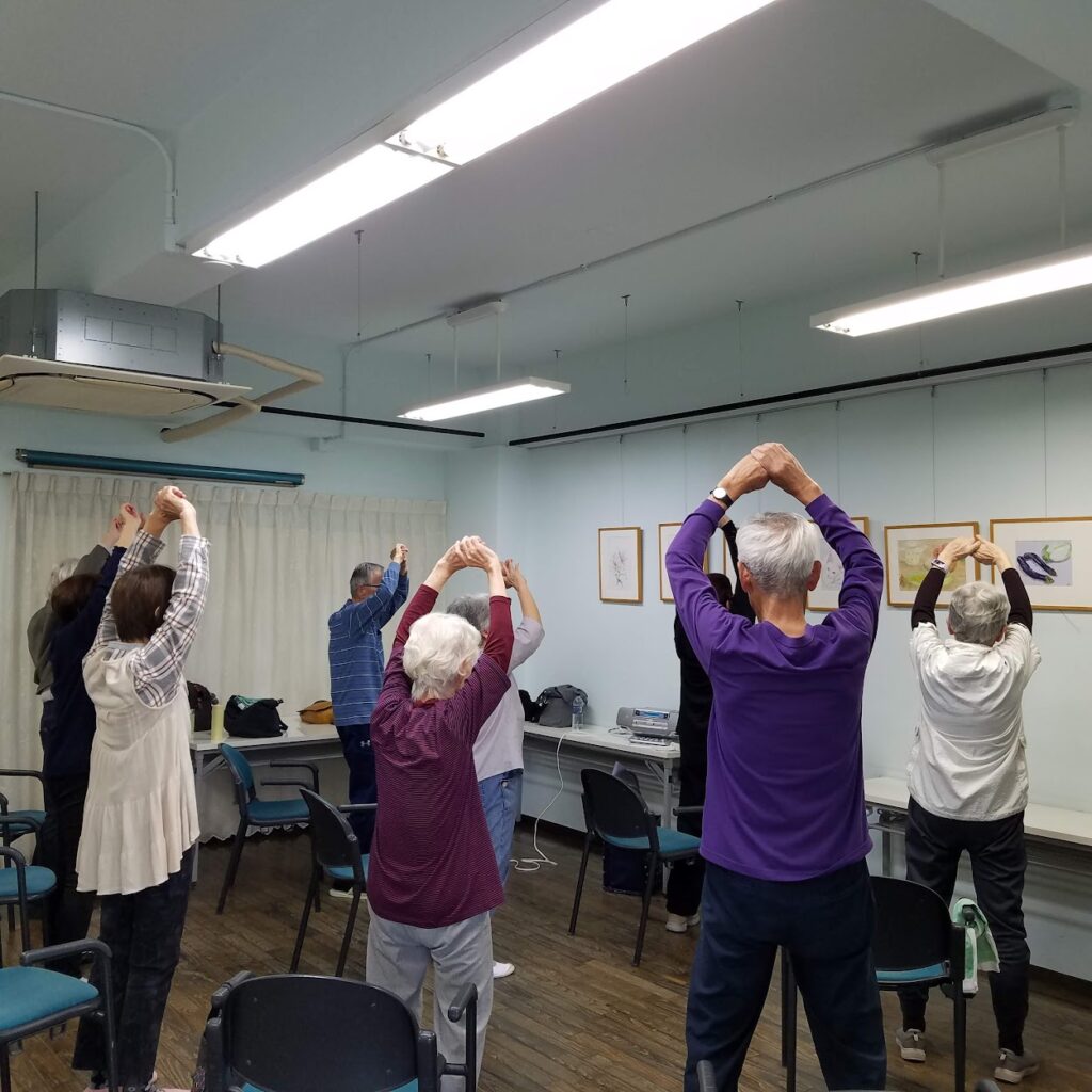 今週の体操では、高田みずえさんの「ガラス坂」に合わせて、ゆったりと体を動かしました。