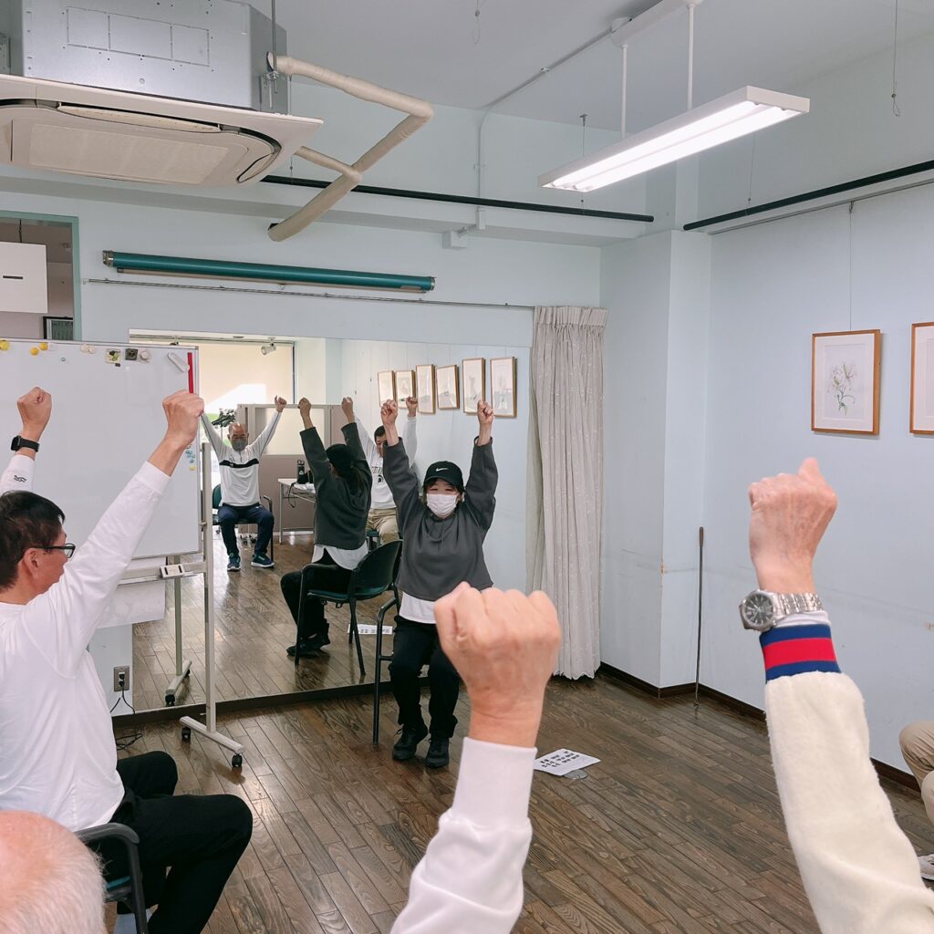 最初は「ちょっとキツイな…」という声もありましたが、音楽に合わせて体を動かすうちに、だんだんと笑顔が増えていきました😊
