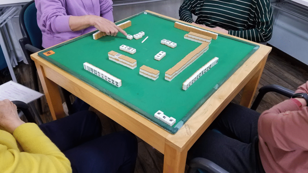 初回は「ルールもよくわからない」とおっしゃっていた方々も、今ではすっかりベテランの風格。点数計算もスムーズになり、手牌の読みや捨て牌のタイミングにも工夫が見られます。「前はツモってばかりだったけど、今はちゃんと考えて捨ててるのよ」と笑う姿に、成長の喜びがにじみます。回を重ねるごとに上達が目に見えてわかるのも、この教室の醍醐味です。