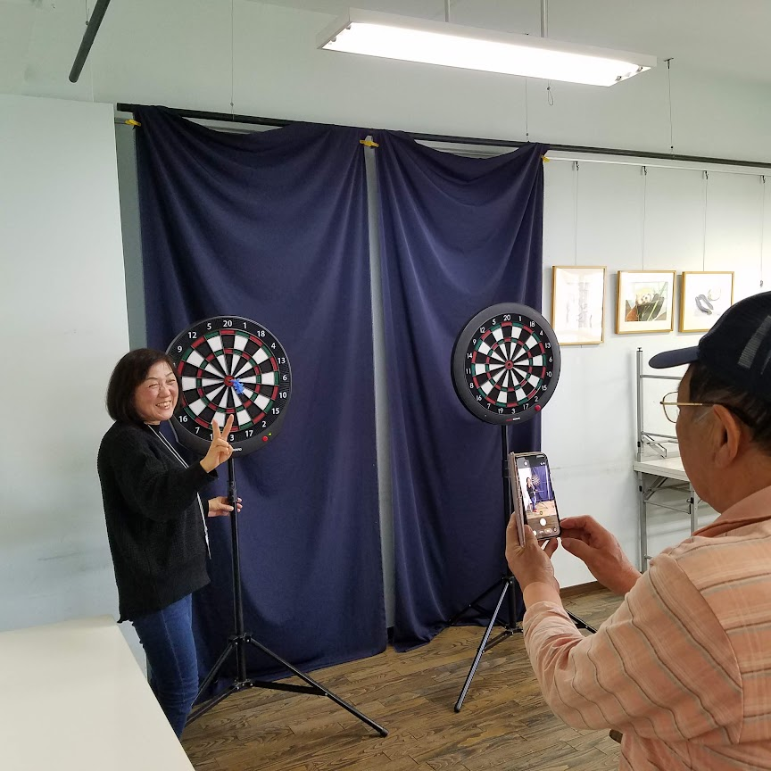 そして、今日一番の盛り上がりを見せたのは、やはり本番の「ゼロワンゲーム」。真剣な表情で的を見つめる姿は、皆さんとても生き生きとしていて、ゲームが進むたびに歓声と笑い声があふれました。中でも久しぶりに“ハットトリック”(3本すべてが同じ高得点のエリアに入ること)が出た瞬間には、会場全体が驚きと喜びに包まれ、大きな拍手喝采となりました。
