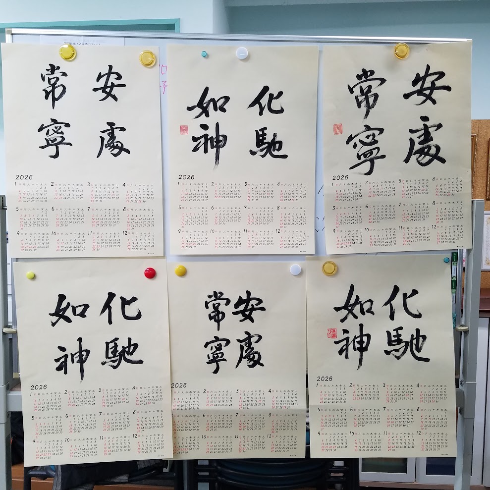 そんな過ごしやすい気候の中、皆さんと一緒に 年末の恒例作品「書道カレンダー」 を仕上げました。