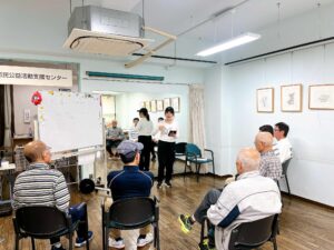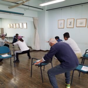 講座では、まずはストレッチや軽い体操からスタートし、徐々にスクワットや下半身の筋トレへ。