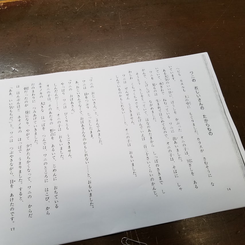 今日は「ワニのおじいさんの宝物」「生きる」を朗読しました。