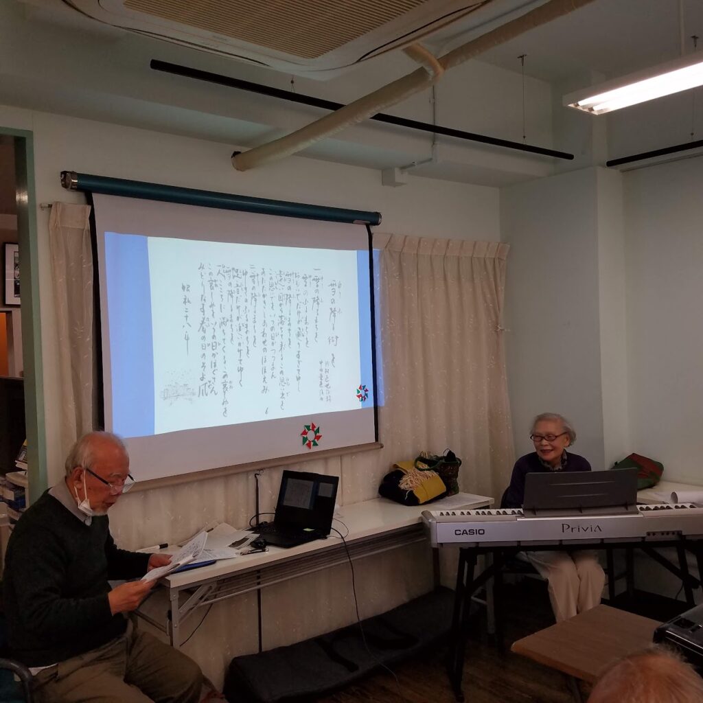 この日は懐かしい童謡中心に13曲、声を合わせて歌いました。
