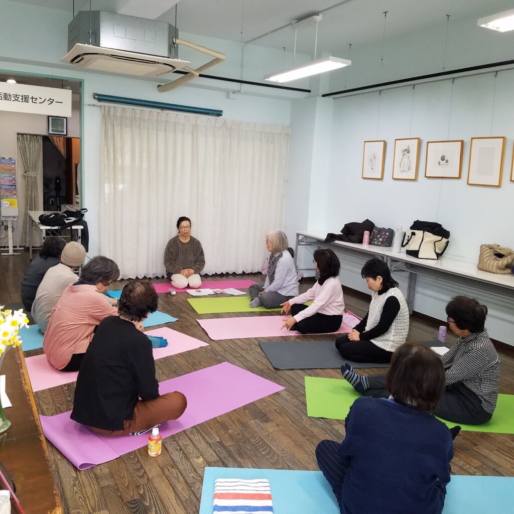 年齢を重ねた体に無理のない、やさしいヨーガ療法を行っています。椅子に座ったままできる動きや、呼吸を大切にした穏やかな体操が中心ですので、運動が久しぶりの方や体力に自信のない方も安心してご参加いただけます。