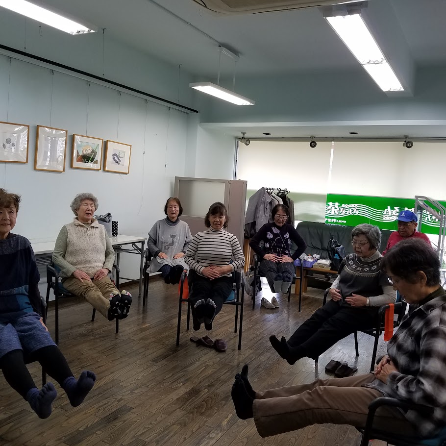 代表的な運動に① 片脚立ち② スクワットがあります。ほかにもつま先立ちやかかと立ち、フロントラウンジなどがあり、これらは欠かせない運動になっています。必ず準備体操とストレッチをしてから行います。おしゃべりも楽しみになっていますので、お口の体操も兼ねていますね!